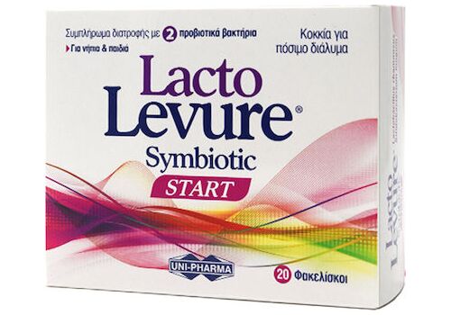 ΤοLactoLevure®Symbiotic Startπροορίζεται για να βοηθήσει στον αποικισμό ωφέλιμων βακτηριδίων στο έντερο των νηπίων και των παιδιών. Περιέχει 2 στελέχη προβιοτικών που βρίσκονται από τη φύση τους στο υγιές έντερο και βοηθούν στην αποκατάσταση της εντερικής χλωρίδας. Ακόμη, περιέχει πρεβιοτικά, υδατάνθρακες ανθεκτικούς στο γαστρικό υγρό και στα παγκρεατικά ένζυμα, που ευνοούν την ανάπτυξη των ωφέλιμων βακτηρίων, προσφέροντας τροφή και δημιουργώντας ιδανικό περιβάλλον για τον πολλαπλασιασμό τους.