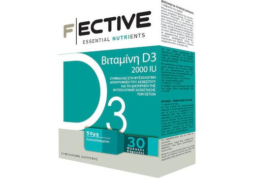 F ECTIVE Essential Nutrients Vitamin D3 2000IU Συμπλήρωμα Διατροφής για Υγεία των οστών και ενίσχυση ανοσοποιητικού, 30 Μαλακές Κάψουλες