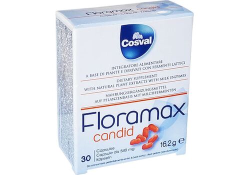 Το συμπλήρωμα διατροφής COSVAL Floramax Candid 30 Caps περιέχει προβιοτικά και φυτικά εκχυλίσματα και είναι χρήσιμο σε κολπικές μυκητιάσεις από CandidaAlbicans.