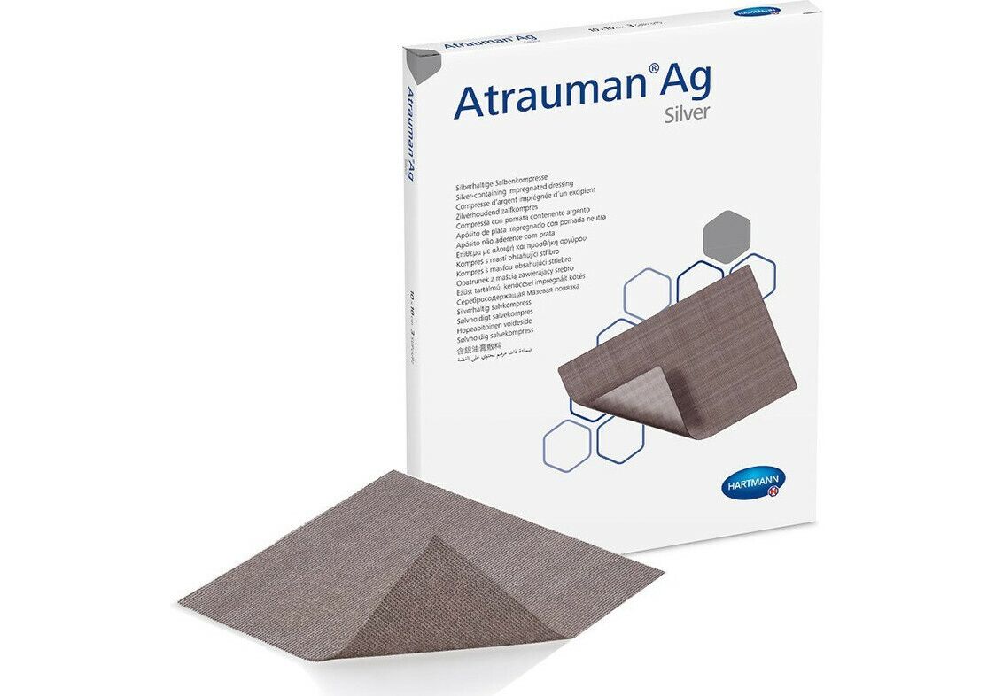 Επιθέματα κατακλίσεων αργύρου Atrauman Ag με ισχυρή αντιμικροβιακή δράση που προφυλάσσουν από μολύνσεις ή επιμολύνσεις κατά τη διάρκεια επούλωσης ενός έλκους ή τραύματος.