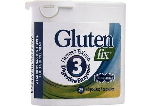Uni-Pharma Gluten Fix Συμπλήρωμα διατροφής για άτομα που έχουν ευαισθησία στη γλουτένη με 3 Πεπτικά ένζυμα 25 κάψουλες