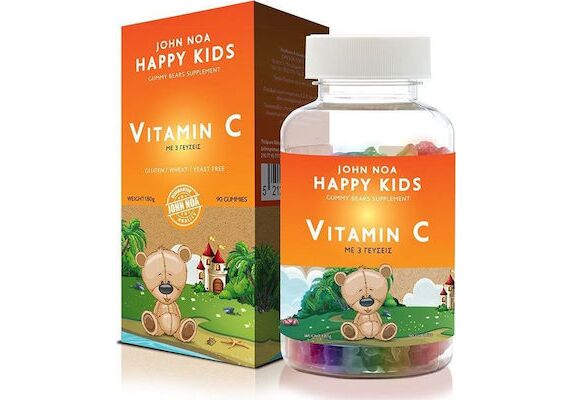 John Noa Happy Kids Vitamin C Συμπλήρωμα Διατροφής με Βιταμίνη C για Παιδιά 3+ Ετών σε 3 Γεύσεις, 90 Ζελεδάκια