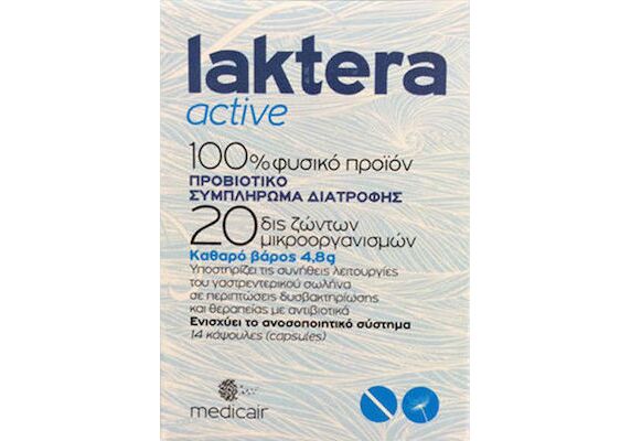 Medicair Laktera Active 100% Φυσικό Προϊόν Συμπλήρωμα Διατροφής με Προβιοτικά 14caps