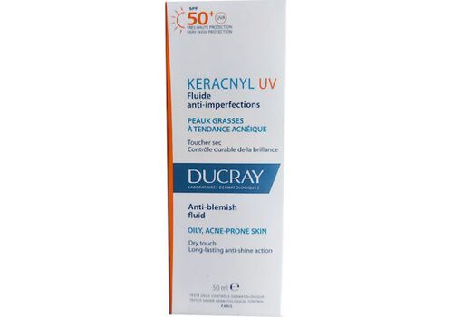 Η Ducray KERACNYL UV SPF50+ FLUID είναι η κατάλληλη αντηλιακή φροντίδα για το Λιπαρό Δέρμα με Τάση Ακμής. Δρα κατά των ατελειών, προσφέρει υψηλή αντηλιακή προστασία SPF50+. Η υφή της είναι λεπτόρρευστη, μη-φαγεσωρογόνος και ανθεκτική στο νερό. Έχει μία στεγνή αίσθηση, αφήνει ματ τελείωμα και είναι ιδανική βάση για το μακιγιάζ.