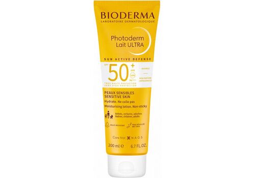 Το Photoderm Lait ULTRA SPF50+ είναι το αποτέλεσμα της τελευταίας έρευνας του Εργαστηρίου της Bioderma. Προσαρμόστηκε για να παρέχει πολύ υψηλή προστασία, ενισχυμένη από τις ακτίνες UVA, για όλα τα ευαίσθητα δέρματα, ακόμη και τα πιο ευάλωτα.