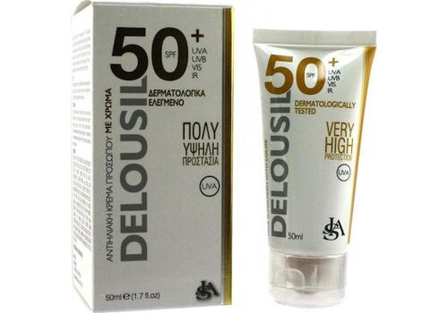 SJA Pharm Delousil Silky Skin Formula SPF50 Αντηλιακή Κρέμα Προσώπου Με Χρώμα & Μεταξένια Ματ Υφή, 50ml
