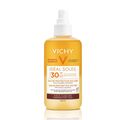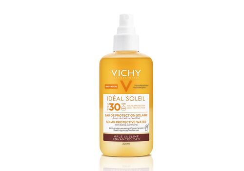 Το αντηλιακό νερό προστασίας Vichy Ideal Soleil Eau de Protection Solaire Hale Sublime SPF30 με βήτα καροτίνη, παρέχει μια αίσθηση φρεσκάδαςσε κάθε εφαρμογή, εξασφαλίζοντας παράλληλα υψηλή αντηλιακή προστασία και ασφαλές μαύρισμα.