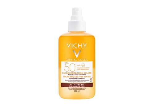 Vichy Capital Soleil Solar Protective Water Hydrating SPF50 Λαμπερό Μαύρισμα με Νερό Προστασίας από Τον Ήλιο με Β-Καροτένιο, 200ml