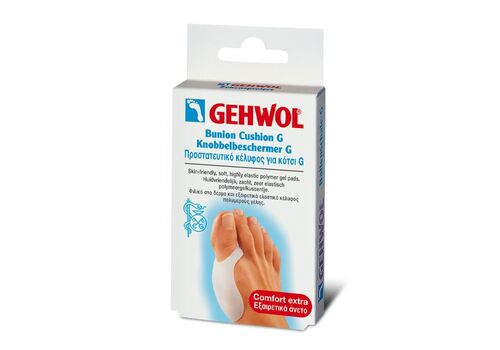 Αντιπιεστικό και προστατευτικό επικάλυμμα πολυμερούς γέλης, τύπου G. Επικάλυμμα απο μαλακό, υψηλής ελαστικότητας υλικό, φιλικό στο δέρμα, για προστασία από πίεση. Έχει τέλεια εφαρμογή στο σχήμα του ποδιού και των δακτύλων. Προστατεύει και ανακουφίζει από πίεση και τριβή στο κότσι. Έχει μαλακό κέλυφος από πολυμερή γέλη και φοριέται κάτω από την κάλτσα, προσφέροντας μεγάλη άνεση στο περπάτημα. Επίσης, η χρήση του σε συνδυασμό με τους διαχωριστές δακτύλων G έχει άριστα αποτελέσματα. Εφαρμόζει τέλεια στο πέλμα χωρίς να γλιστράει. Ενεργεί υποστηρικτικά σε θεραπείες, ενώ είναι ιδανικό για ρευματικούς ασθενείς.