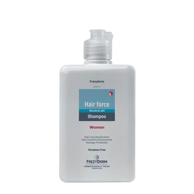 Το Frezyderm Hair Force Shampoo Women αντιμετωπίζει τόσο την εποχική όσο και τη χρόνια αντιδραστική τριχόπτωση και τα αδύναμα μαλλιά.