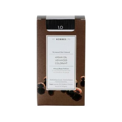 Korres Argan Oil Advanced Colorant 1.0 Μαύρο Φυσικό Μόνιμη Βαφή Μαλλιών με Τεχνολογία Pigment Lock που κλειδώνει το Χρώμα, 50ml
