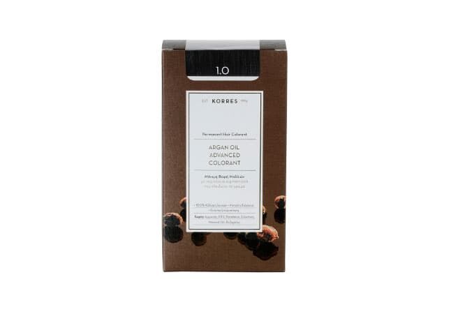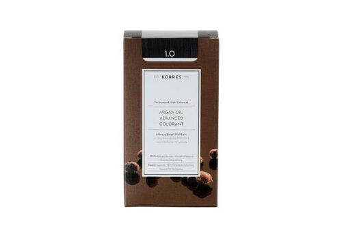 Korres Argan Oil Advanced Colorant 1.0 Black Natural Permanent Hair Dye with Pigment Lock Technology, 50ml