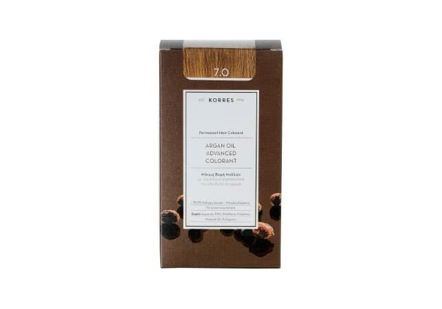 Korres Argan Oil Advanced Colorant 7.0 Ξανθό Φυσικό Μόνιμη Βαφή Μαλλιών με Τεχνολογία Pigment Lock που κλειδώνει το Χρώμα, 50ml
