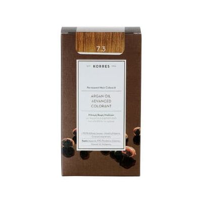 Korres Argan Oil Advanced Colorant 7.3 Ξανθό Χρυσό/ Μελί Μόνιμη Βαφή Μαλλιών με τεχνολογία Pigment-Lock που κλειδώνει το χρώμα 50ml