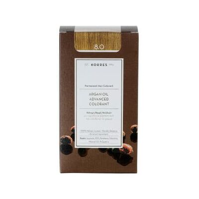 Korres Argan Oil Advanced Colorant 8.0 Ξανθό Ανοιχτό Μόνιμη Βαφή Μαλλιών με Τεχνολογία Pigment Lock που κλειδώνει το Χρώμα, 50ml