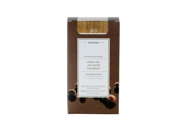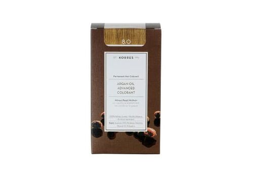 Korres Argan Oil Advanced Colorant 8.0 Light Blonde Permanent Hair Dye with Pigment Lock Technology, 50ml