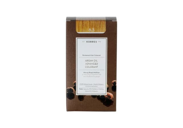 Korres Argan Oil Advanced Colorant 8.3 Ξανθό Ανοιχτό Μελί Μόνιμη Βαφή Μαλλιών με Τεχνολογία Pigment Lock που κλειδώνει το Χρώμα, 50ml