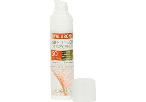 Αντηλιακή κρέμα προσώπου Froika Hyaluronic Silk Touch Sunscreen με δείκτη προσασίας που προσφέρει μεταξένια υφή χωρίς ίχνος λιπαρότητας.