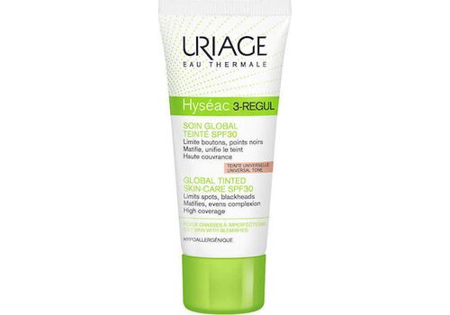 Προϊόν πολλαπλής δράσης και περιποίησης της επιδερμίδας, το Hyseac 3-Regul Soin Global Teinte SPF30 της Uriage, συμβάλλει στην εξάλειψη των ατελειών του δέρματος (κηλίδες, σπυράκια, μαύρα στίγματα, θαμπό δέρμα), αφήνει το δέρμα καθαρό και με ματ αποτέλεσμα.