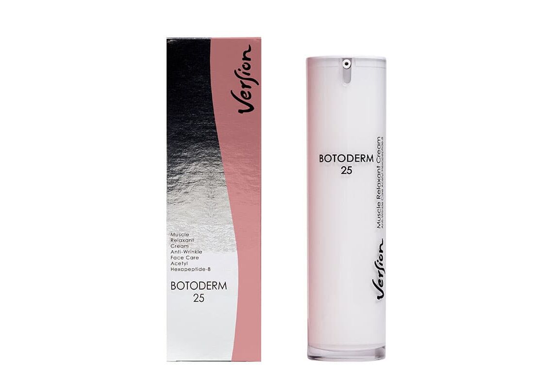 Η Botoderm 25 Anti Wrinkle Face Care της Version είναι βασισμένη σε μια αποτελεσματική σύνθεση για τη μείωση των ρυτίδων, που εξασφαλίζει νεανικότερη επιδερμίδα. Χρησιμοποιείται όλες τις ώρες της ημέρας και κάτω από τα προϊόντα της καθημερινής φροντίδας του προσώπου. Η κρέμα αυτή βοηθά οτην «ανόρθωση των χαρακτηριστικών», απαλύνει τις γραμμές και τις ρυτίδες και φωτίζει την επιδερμίδα, παρέχοντάς της ενέργεια και σφριγηλότητα.
