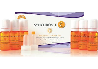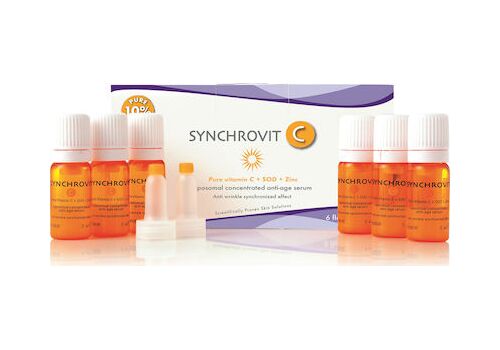 Ορός αντιγήρανσης με στοχευμένη δράση καταπολέμησης των ελευθέρων ριζών. Η καθαρή βιταμίνη C βρίσκεται σε μορφή σκόνης και ενσωματώνεται τη στιγμή της χρήσης. Ο ορός SYNCHROVIT C συμβάλλει στην αποτελεσματική, γρήγορη και ορατή βελτίωση των λεπτών γραμμών, των ρυτίδων έκφρασης αλλά και των βαθύτερων ρυτίδων ενώ συγχρόνως ομαλοποιεί το χρώμα του δέρματος, προσφέροντας λάμψη και φωτεινότητα. Ανάλογα με τις ιδιαίτερες ανάγκες του δέρματος, χρησιμοποιείται καθημερινά σε συνδυασμό με το κατάλληλο προϊόν φροντίδας.