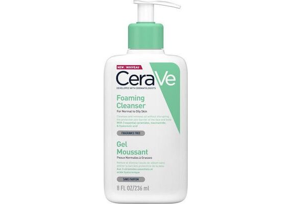 Το CeraVe Foaming Cleanser, που έχει δημιουργηθεί μαζί με δερματολόγους, καθαρίζει σε βάθος, χωρίς να διαταράσσει τον επιδερμιδικό φραγμό.Αυτό το αναζωογονητικό gel, με 3 απαραίτητα ceramides και υαλουρονικό οξύ, απομακρύνει αποτελεσματικά ρύπους, μακιγιάζ και την περίσσεια λιπαρότητας.