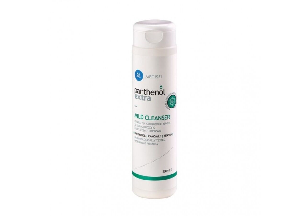 Το Panthenol Extra Mild Cleanser είναι ένα ιδιαίτερα απαλό καθαριστικό χωρίς αλκάλια και σαπούνι, κατάλληλο για καθημερινή χρήση. Βασισμένο σε ήπια, πολύ φιλικά προς το δέρμα συστατικά και εμπλουτισμένο με Πανθενόλη, Χαμομήλι και Sensiva, καθαρίζει απαλά χωρίς να αφυδατώνει ή να ερεθίζει την επιδερμίδα. Με ήπιες αντισηπτικές ιδιότητες, καταπολεμά την κακοσμία του σώματος και αφήνει το δέρμα αναζωογονημένο και μαλακό. Χωρίς χρώματα και αλλεργιογόνα, είναι κατάλληλο για το πρόσωπο, το σώμα και την ευαίσθητη περιοχή.