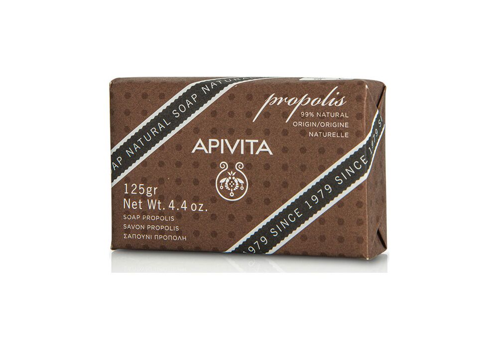 Φυσικό σαπούνι με πρόπολη και μέλι με 97% φυσικά συστατικά, το οποίο καθαρίζει βαθιά τους πόρους και ρυθμίζει την έκκριση του σμήγματος.