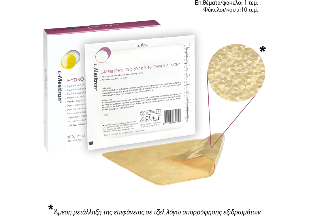 The L-Mesitran® Hydro 10cm X 10cm pad is a lightly adhesive polymer pad with a waterproof outer surface and is an excellent choice for healing superficial ulcers with any degree of exudate or mild cell necrosis