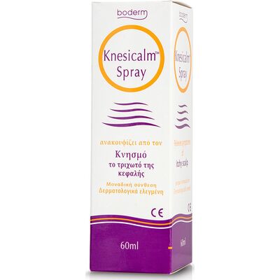 Το Knesicalm™ Spray ανακουφίζει και καταπραΰνει τα συμπτώματα του κνησμού στο τριχωτό της κεφαλής (αίσθημα καύσου, ερύθημα, απολέπιση). Η μοναδική του σύνθεση είναι πλούσια σε ουρία, γλυκυρητινικό οξύ, εκχύλισμα του φυτού boehravia diffusa, αλλαντοϊνη, μενθόλη και πανθενόλη. Τα συστατικά αυτά ενυδατώνουν, ανακουφίζουν και καταπραΰνουν τις ερεθισμένες περιοχές του τριχωτού της κεφαλής με συμπτώματα κνησμού καθώς επίσης το διατηρούν σε καλή κατάσταση βοηθώντας στην απομάκρυνση των νεκρών κυττάρων που δημιουργούνται στην επιφάνειά του τα οποία επιδεινώνουν το αίσθημα κνησμού.