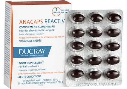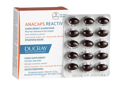 Η πρωτότυπη σύνθεση του Anacaps Reactiv προσφέρει στο βολβό της τρίχας βιοτίνη που συμμετέχει στη διατήρηση μια υγιούς τρίχας και βιταμίνη Β6 που συνεισφέρει στην ομαλή σύνθεση της κυστεΐνης. Επιπλέον, οι βιταμίνες Β3 και Β6 συνεισφέρουν στην εξασθένηση των φαινομένων της κούρασης. Το anacaps reactiv περιέχει επίσης βιταμίνη Ε που επιτρέπει την προστασία των κυττάρων από τις οξειδωτικές βλάβες.