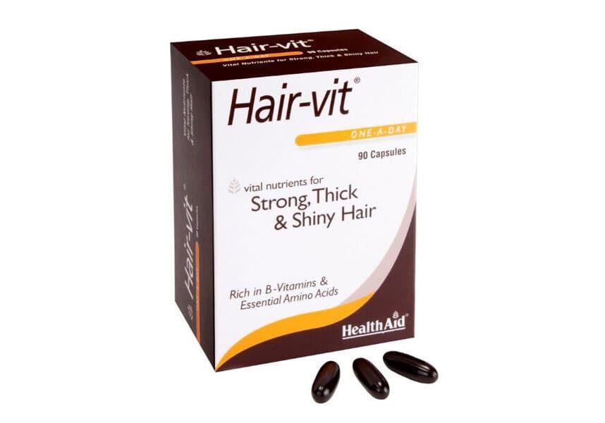Health Aid Hair-Vit Συμπλήρωμα Διατροφής με Βιταμίνες, Μέταλλα, Ιχνοστοιχεία & Αμινοξέα για Υγιή Μαλλιά, 90 Κάψουλες