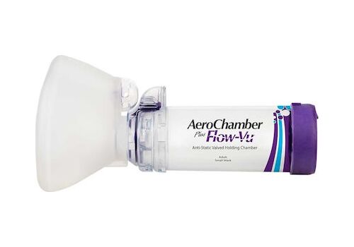AeroChamber Plus Adult Inhalation Drug Delivery Chamber with Flow-Vu Inhalation Indicator and Small Mask.