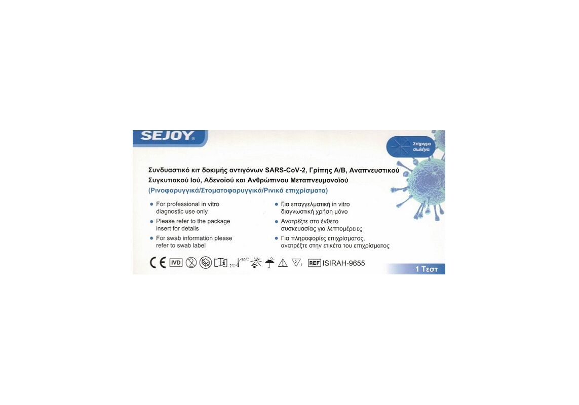 Sejoy Τεστ 6πλό Συνδυαστικό κιτ δοκιμής αντιγόνων SARS-CoV-2 ,Γρίπης A/B ,Αναπνευστικού Συγκυτιακού Ιού RSV, Αδενοϊου και Ανθρώπινου Μεταπνευμονοϊού HMPV -1 κιτ