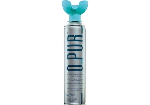 Φορητή φιάλη οξυγόνου O-PUR από αλουμίνιο, μίας χρήσης, χωρητικότητας 8 λίτρων για 70-80 εισπνοές, χωρίς πρόσθετα, συντηρητικά, αρωματικές ουσίες, σκόνες κλπ.