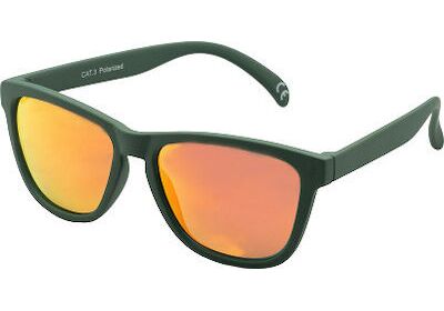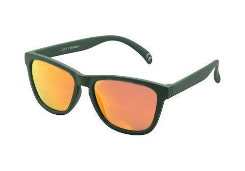 Sunglasses in cypress green color with UV400 protection and Polarized mirrored lens in orange color