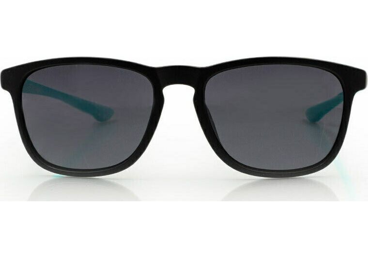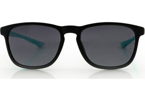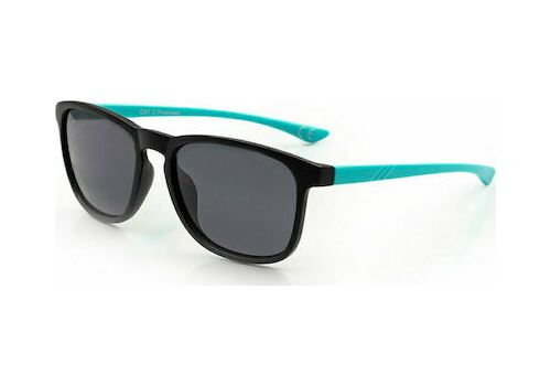 Two-tone sunglasses, black front with turquoise arms, UV400 protection and polarized lens.