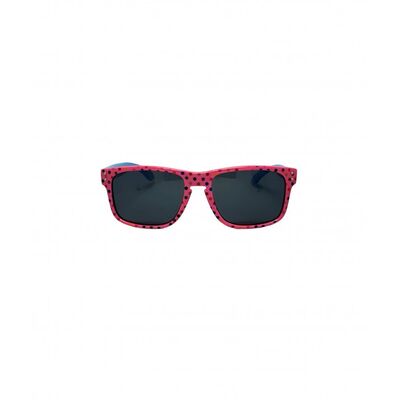 Παιδικά γυαλιά ηλίου ροζ μετώπη, μπλε βραχίονες και πολύχρωμες βούλες,προστασία UV400 και Polarized φακό.