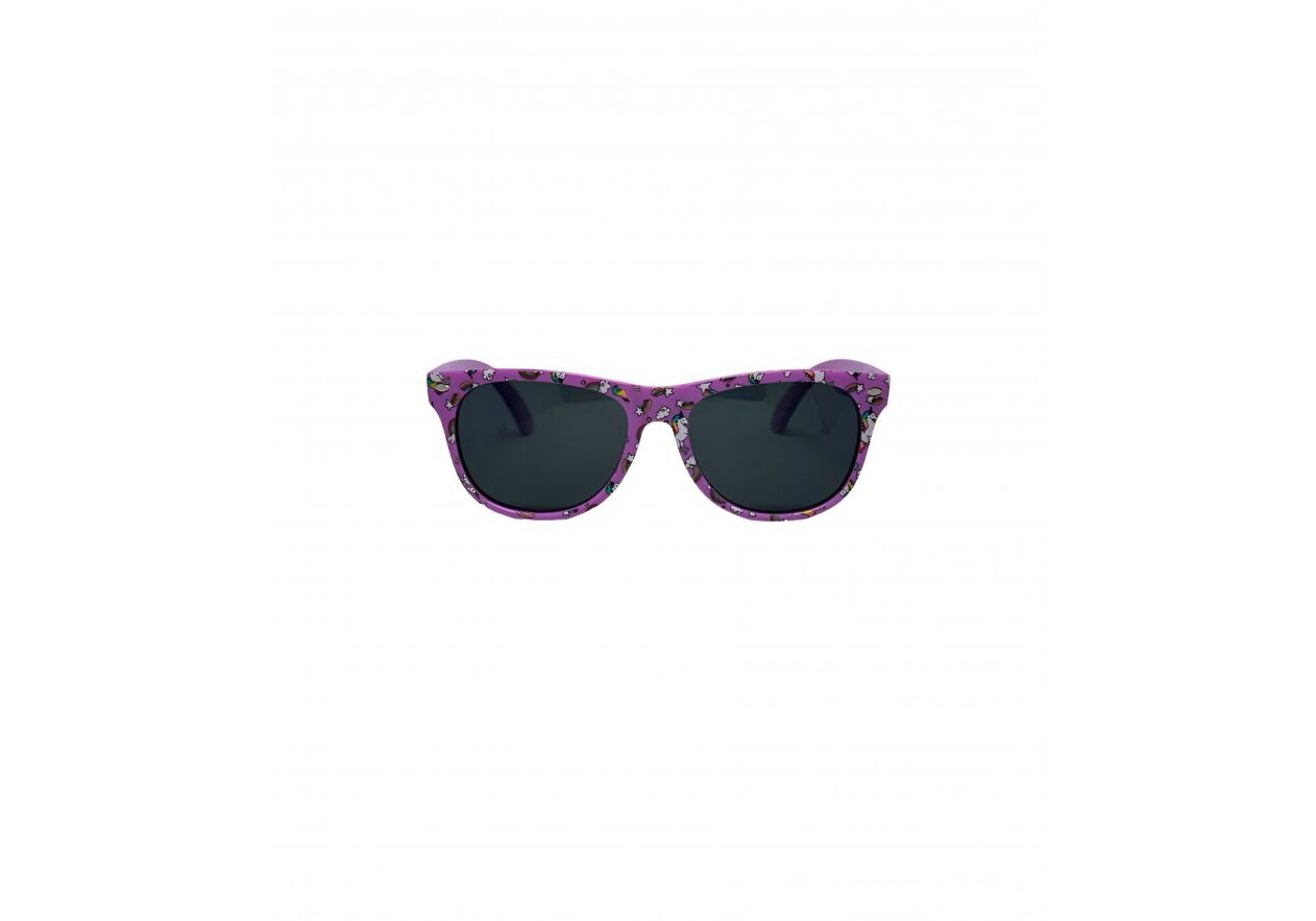 Purple children's sunglasses with unicorn designs, UV400 protection and polarized lens.