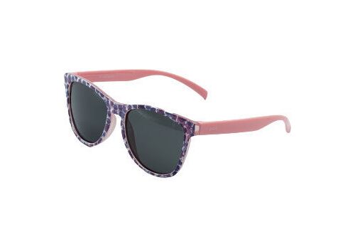 Children's sunglasses with purple patterns on the front and pink arms, UV400 protection and polarized lens.