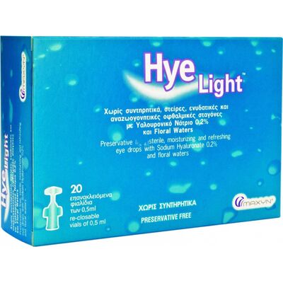 Maxyn Hye Light Λιπαντικές Οφθαλμικές Σταγόνες με Υαλουρονικό Νάτριο 0,2% 20 x 0,5ml