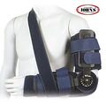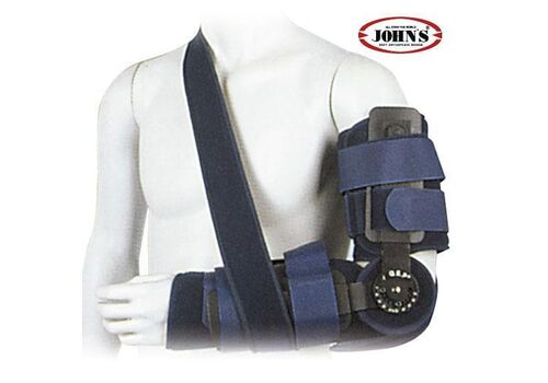 Κατασκευή από εύκαμπτο, επενδεδυμένο με μαλακό αφρώδες υλικό και βαμβακερή υποαλλεργική φανέλα. Πολυκεντρική άρθρωση για ρύθμιση κάμψης - έκτασης του αγκώνα. Αυτοκόλλητοι δετήρες για εύκολη χρήση. Μετεγχειρητική χρήση για έλεγχο του εύρους κινήσεων του αγκώνα. Διαστρέμματα & εξάρθρωση του αγκώνα.