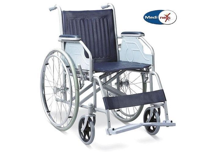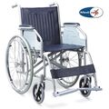 Πτυσσόμενο αναπηρικό καρότσι με διπλή χιαστή στήριξη και με μεταλλικό σκελετό χρωμίου.