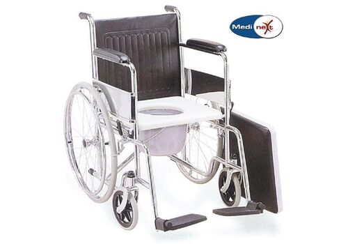 Αναπηρικό αμαξίδιο πτυσσόμενο με WC και υποπόδια. Διαθέτει μεγάλες ρόδες πίσω.