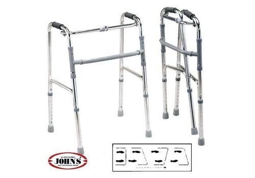 Πτυσσόμενος περιπατητήρας από τη John's. Pυθμίζεται στο ύψος και έχει κίνηση κατά τη βάδιση. Διαστάσεις: 56x57cm x 77,95 cm. Βάρος 2.300Kg
