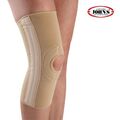 Ελαστική επιγονατίδα νάρθηκας με τρύπα, διπλή ενίσχυση στο γόνατο και 4 σπιράλ ελάσματα. Στηρίζει, προστατεύει και σταθεροποιεί την άρθρωση.