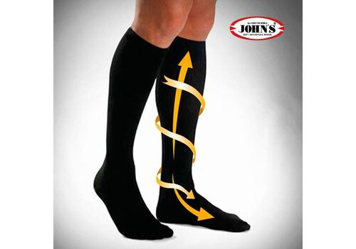Οι ελαστικές ανδρικές κάλτσες JOHNS ξεκουράζουν τα πόδια, ανακουφίζουν από πόνους , προλαμβάνουν τους κιρσούς και τη φλεβίτιδα. H διαβαθμισμένη συμπίεση βοηθά στη βελτίωση της κυκλοφορίας του αίματος. Κατασκευάζονται με την τελευταία λέξη της τεχνολογίας και ελέγχονται ηλεκτρονικά ως προς την ποιότητα και την διαβαθμισμένη συμπίεση που παρέχουν.
