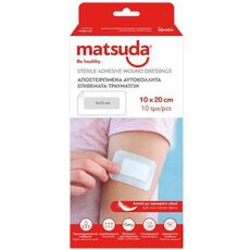 Matsuda Aδιάβροχα Αποστειρωμένα Αυτοκόλλητα Επιθέματα Τραυμάτων 10x20cm 10τεμ