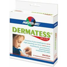 Master-Aid Dermatess Plus Aντικολλητικές, Αποστειρωμένες & Απορροφητικές Γάζες 10x10 12τμχ
