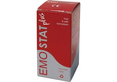 Emostat Plus is a hemostatic cotton based on calcium alginate for minor bleeding and epistaxis.